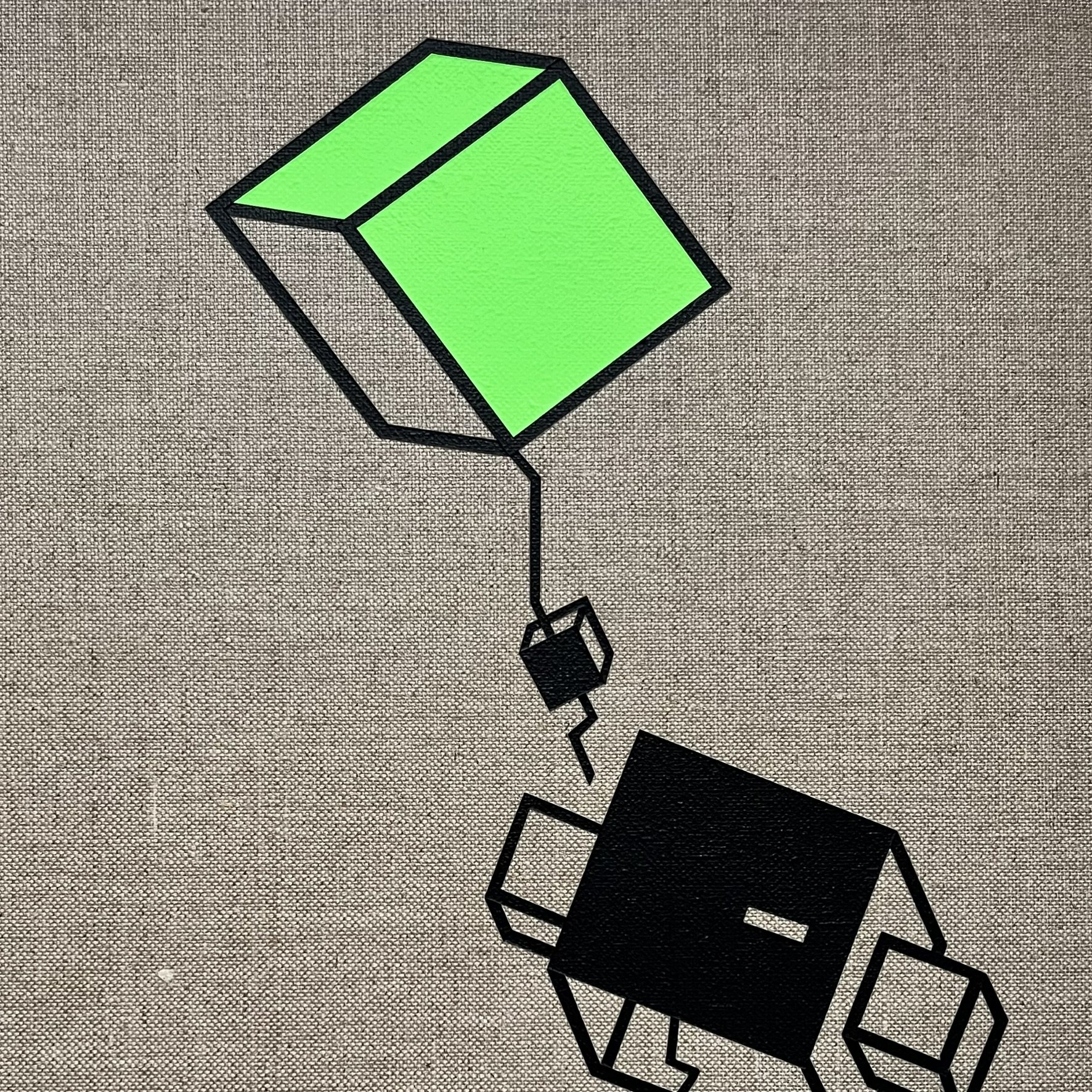 Hypergerade Linien, kantige Formen, Schwarz, Neongrün, Baumwolle – mehr braucht es nicht, um die Story des Robots mit der Seriennummer 2 zu erzählen.